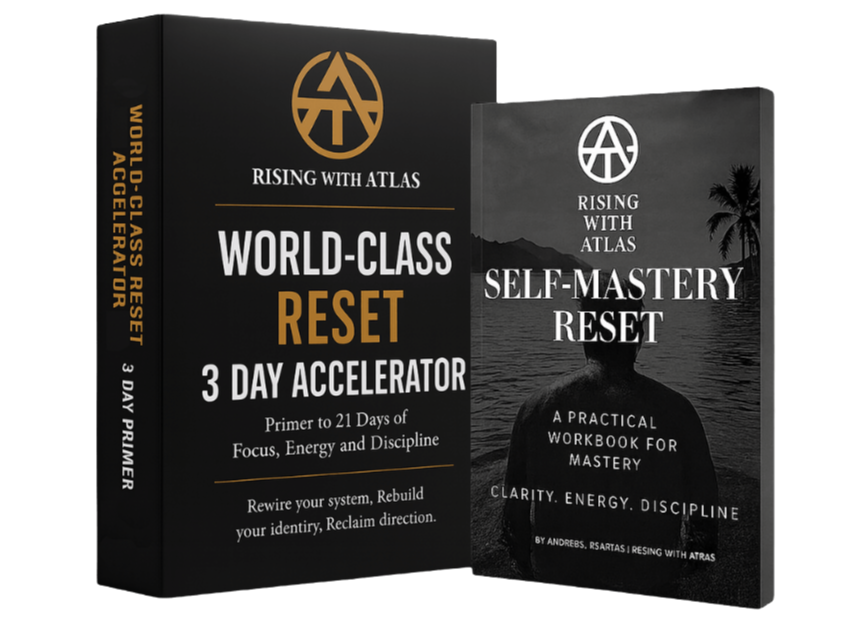 Includes Day 0 Setup, Day 1 Rewire, Day 2 Rebuild, Day 3 Architect, plus the 7-Day Focus Streak tracker and workbook templates.